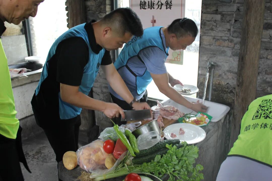 午餐时分,“土灶、柴火、大锅..在追寻土灶柴火的味道和记忆中,大家进入自炊场地,撸起袖子,洗菜、切菜、配菜,在此起彼伏的锅碗瓢盆声中,你生火、我洗菜、她掌勺,各显身手,忙的不亦乐乎,热情高涨地烹制着闽南菜、闽北菜、闽东菜、金华菜等各种美味佳肴,摆上满满一桌让大家大快朵颐。