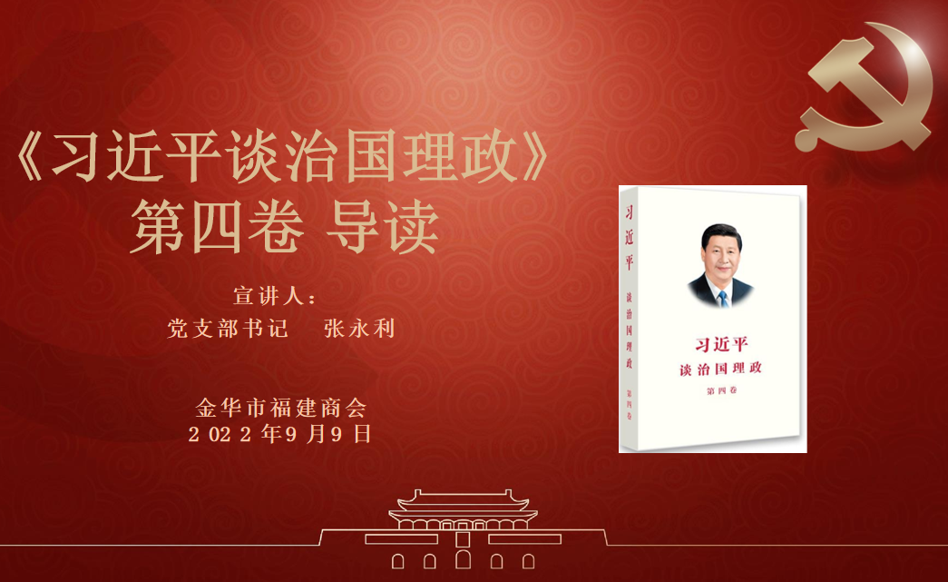 2、商会党支部书记张永利就《习近平谈治国理政》(第四卷)进行专题导读。该书收入了习近平总书记在2020年2月3日至2022年5月10日期间的讲话、谈话、演讲、致辞、指示、贺信等。认真学习《习近平谈治国理政》第四卷,是用习近平新时代中国特色社会主义思想武装全党、教育人民的重大政治任务。希望与会成员要深刻领悟“两个确立”的决定性意义,增强“四个意识”、坚定“四个自信”、做到“两个维护”,切实把学习成果转化为实践成效,在实现共同富裕的道路上展现更大担当和作为。