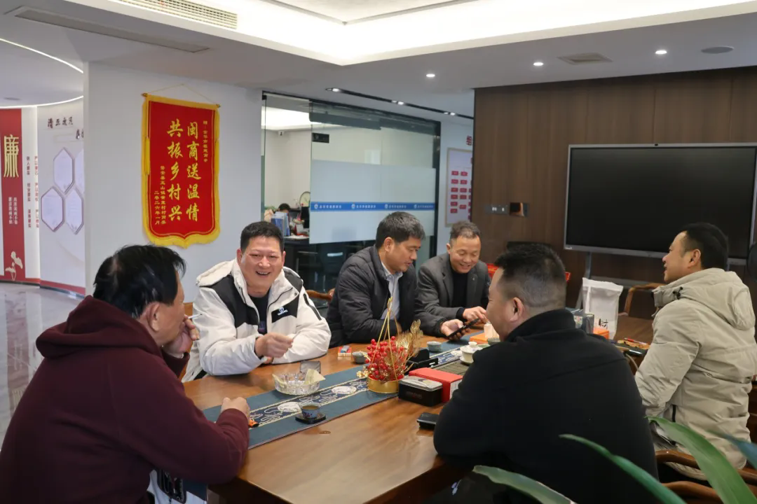 2月10日,金华市福建商会结对帮扶村-金华市罗店镇玲珑岩村市派驻村“第一书记”邓春友、村书记钱旭园、副主任赵小明一行到访我会参观交流,旨在搭建村会沟通桥梁,探寻合作共赢路径。秘书长刘建福、副会长王富强、顾问李向云、副秘书长李婷等热情接待了一行来访人员。