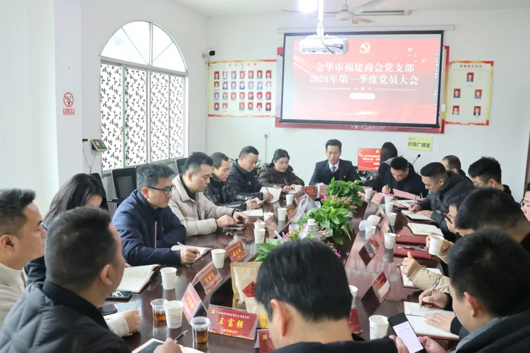 1月26日,金华市福建商会党支部2026年第一季度党员大会隆重召开。支部党员、流动党员、发展对象、入党积极分子等26人参加此次会议,会议由党支部书记张永利主持。
