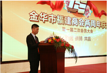 金华市福建商会会长黄昭云在致辞中对商会2015年的工作情况进行了总结汇报,他表示福建商会将更加深入对会员的服务工作,搭建交流互动平台,充分发挥桥梁和纽带作用,热心公益事业,参与家乡经济建设,传承家乡传统文化,为婺闽两地的合作共荣做出积极贡献。