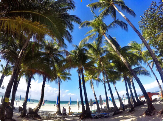 踏入长滩岛,最先映入眼帘的是当地秀丽迷人的自然风光和优雅浪漫的人文景观。长滩岛属于典型的热带海洋气候,全年常夏的岛屿平均温度为23-36摄氏度之间,随时可下海游泳。热带岛屿惯有的碧海、蓝天、沙滩、椰林应有尽有。长滩岛的海水清澈透明,在阳光的照射下如液体宝石,晶莹剔透,光彩照人。蔚蓝的天空,碧蓝的海水,雪白的沙滩,碧绿修长的椰树与和煦的阳光 交相辉映,光彩夺目,美仑美奂,真是名符其实的人间仙境。