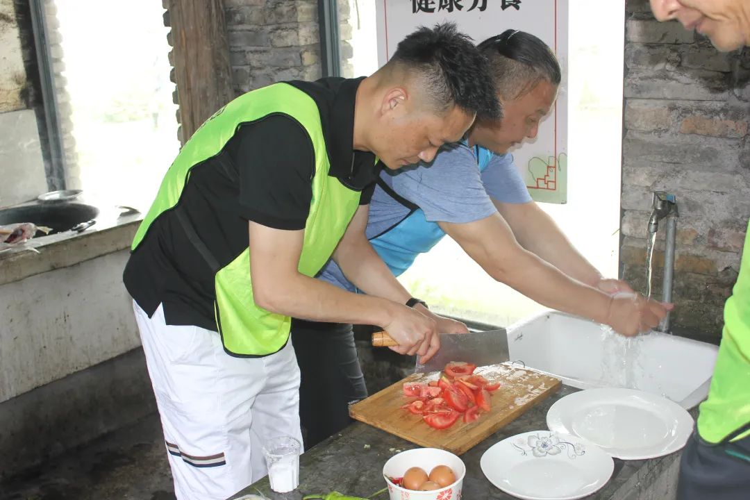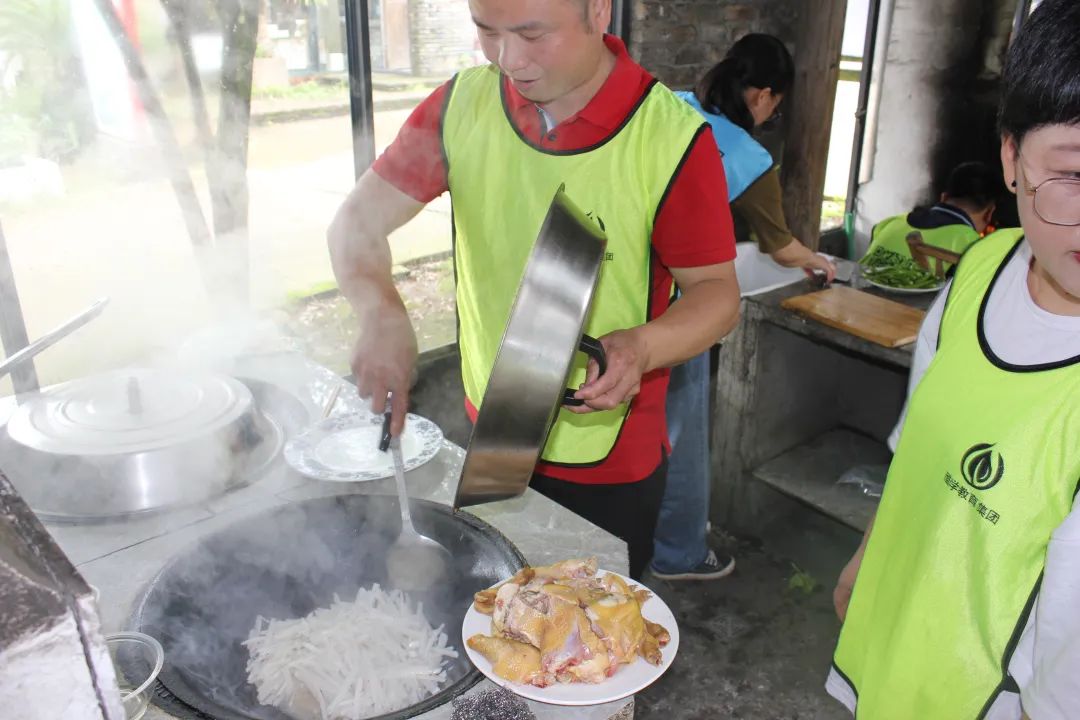午餐时分,“土灶、柴火、大锅..在追寻土灶柴火的味道和记忆中,大家进入自炊场地,撸起袖子,洗菜、切菜、配菜,在此起彼伏的锅碗瓢盆声中,你生火、我洗菜、她掌勺,各显身手,忙的不亦乐乎,热情高涨地烹制着闽南菜、闽北菜、闽东菜、金华菜等各种美味佳肴,摆上满满一桌让大家大快朵颐。