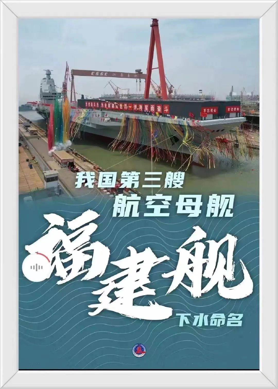 6月17日,我国第三艘航空母舰下水命名仪式在中国船舶集团有限公司江南造船厂举行。中共中央政治局委员、中央军委副主席许其亮出席仪式。