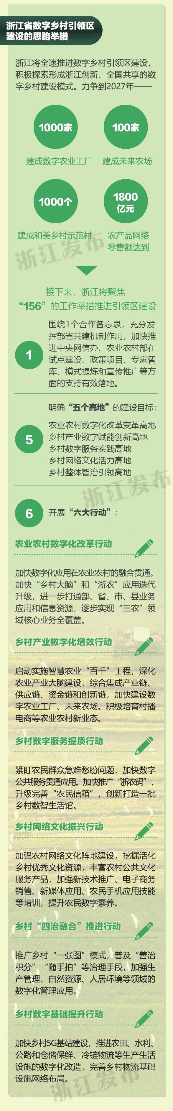 此次部省共建数字乡村引领区花落浙江得益于习近平总书记在浙江工作时作出“数字浙江”“千村示范万村整治”等高瞻远瞩的战略部署,今年还是具有特殊意义的年份,是“数字浙江”20年,也是“千万工程”20年。二十年来,浙江历届省委、省政府忠实践行“八八战略”,将数字浙江建设与“千万工程”有效融合,取得优异成绩。如今,浙江数字乡村建设走在全国前列,得到了部委的充分肯定,对浙江提出了新的期待。