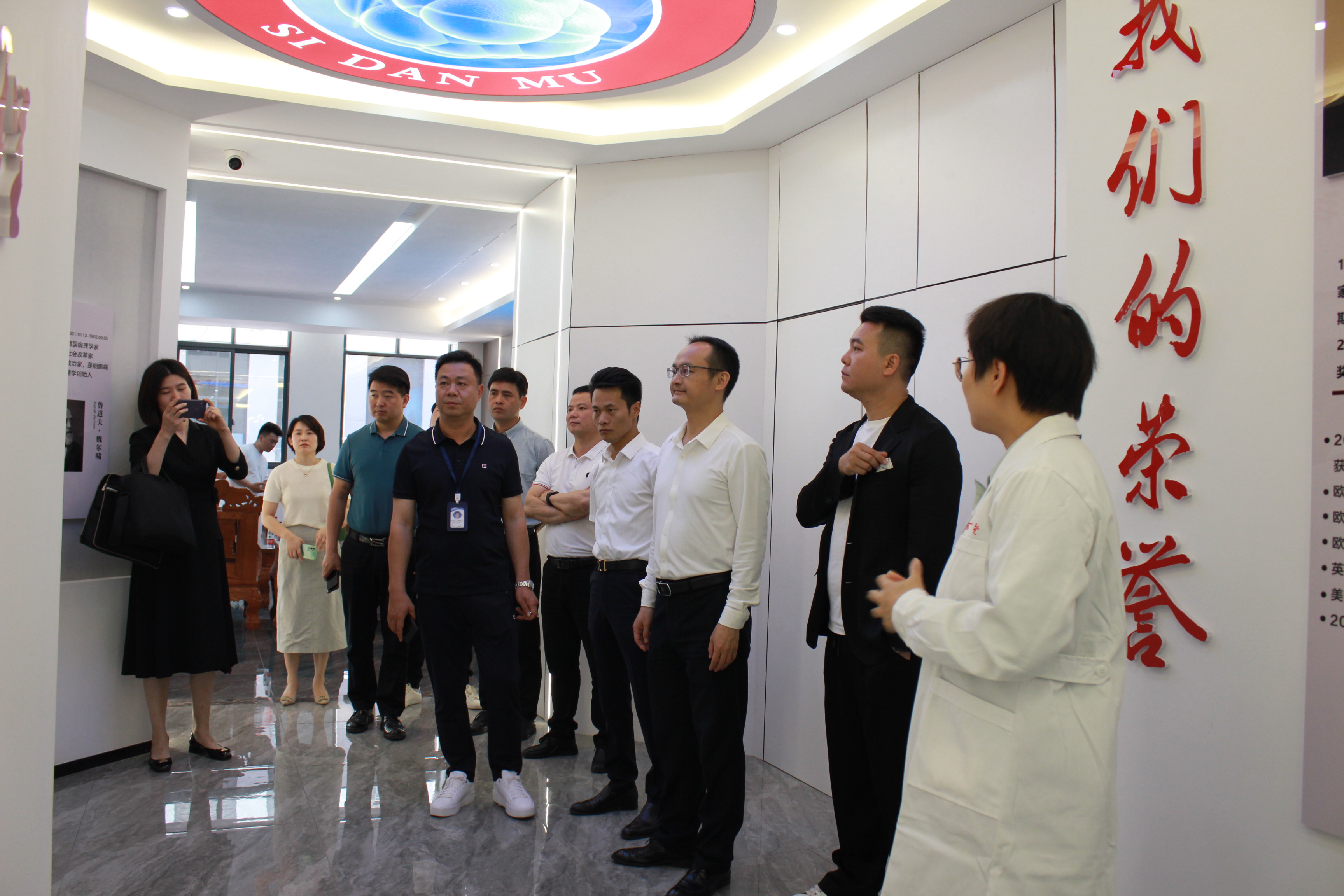 随后,走访团一行人来到了监事长李家熊企业-浙江思丹姆生物科技有限公司。在监事长李家熊的陪同下参观了公司环境,干细胞的存储制备流程和实验室。参观中,工作人员向余主席等一行详细地讲解了公司发展历程和取得的成果,并向大家介绍了思丹姆公司是浙中地区唯一一家专业致力于干细胞生物科学技术研究与临床应用的国家高新技术企业。