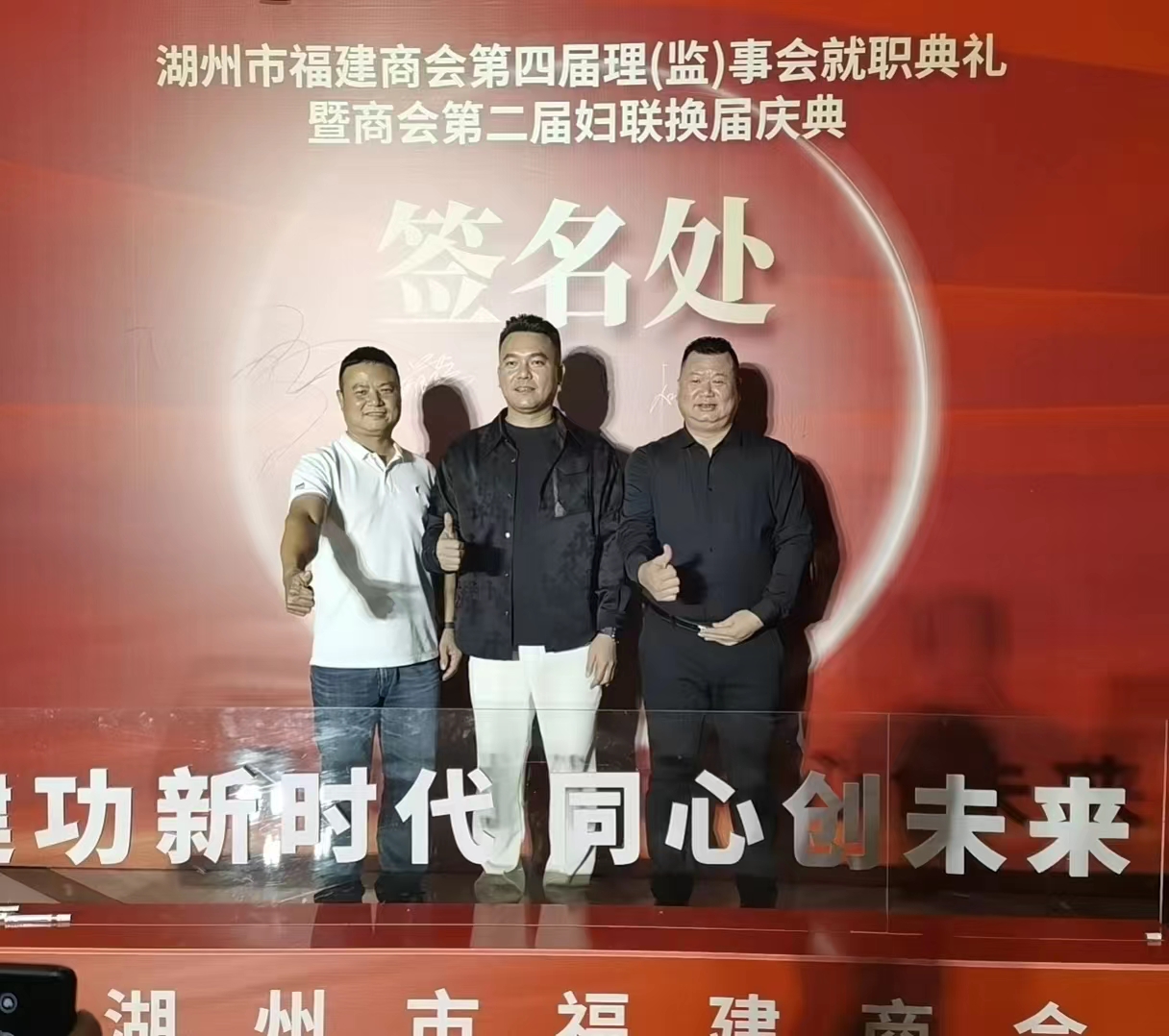 2023年10月14日,湖州市福建商会第四届理(监)事会暨商会第二届妇联换届庆典在湖州太湖龙之梦钻石酒店隆重举行。我会会长林建阳、秘书长刘建福、执行会长洪维浅应邀赴湖州参加典礼。