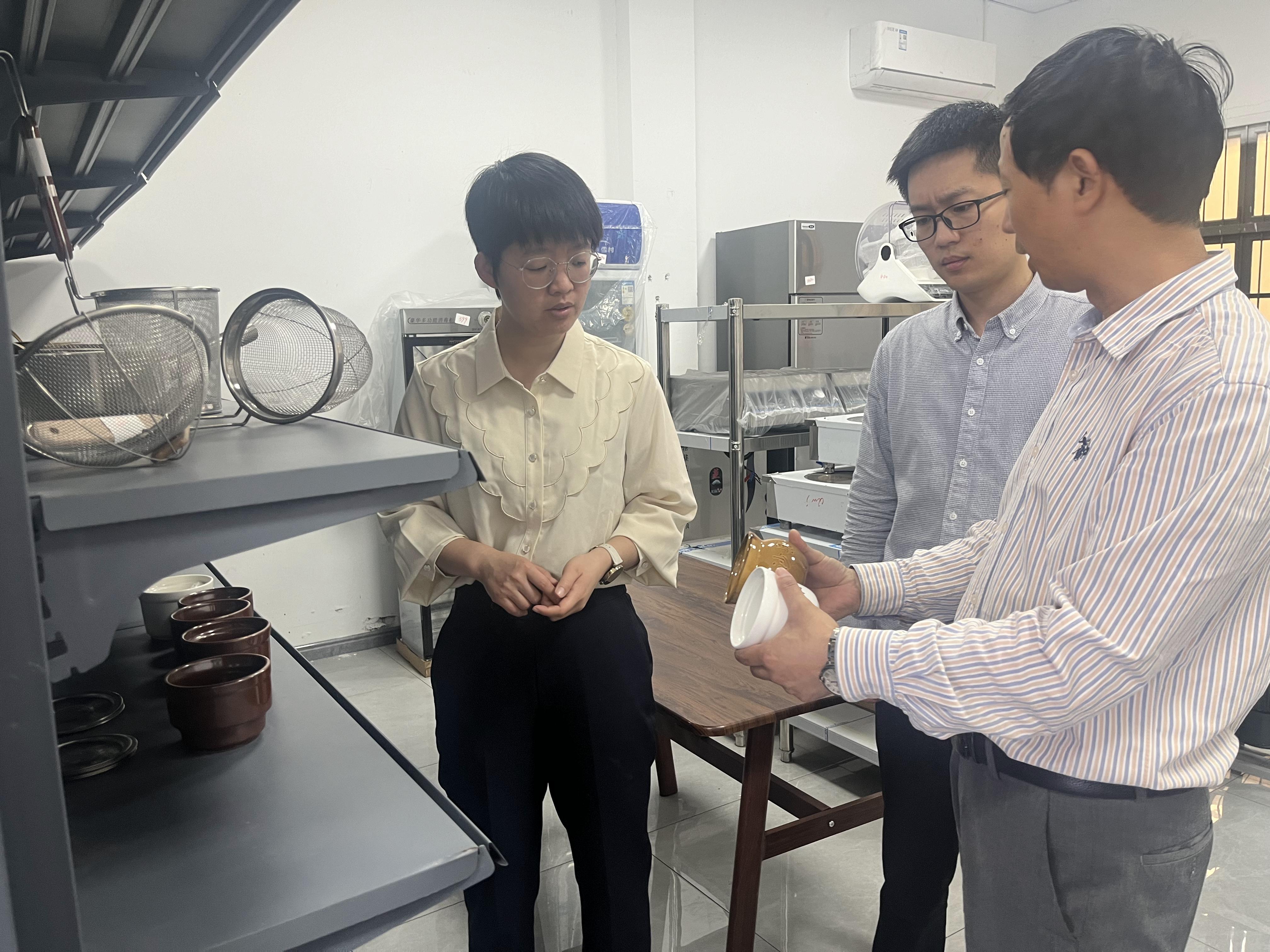 朱书记先后参观了干料仓库、蔬菜分拣区、蔬菜冷藏库、厨具展厅、员工宿舍、食堂以及办公区域。