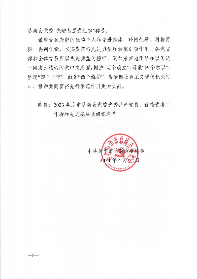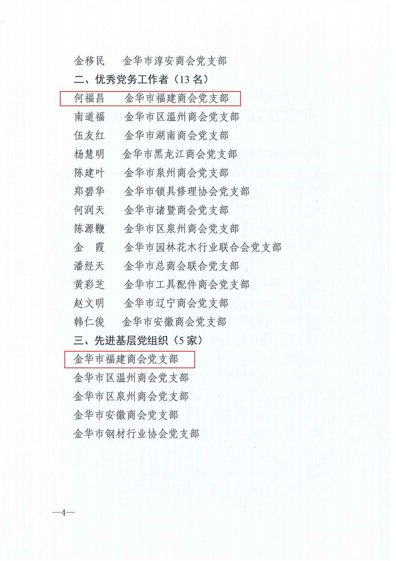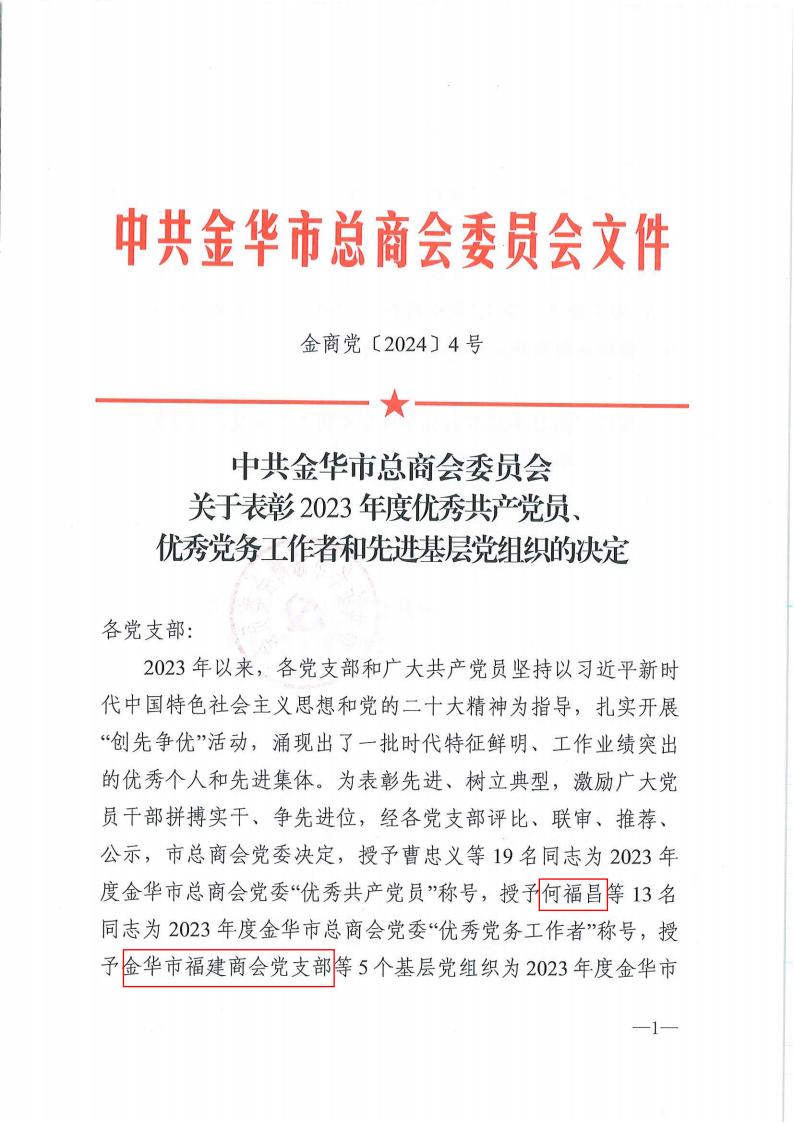 2024年4月12日,金华市福建商会党支部再次被评为“先进基层党组织”。