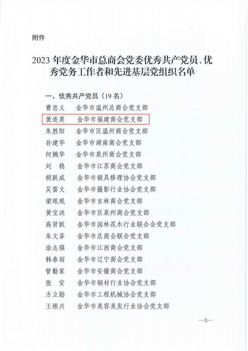 金华市福建商会党支部宣传委员何福昌同志被授予2023年度“优秀党务工作者”称号,党员黄连英同志被授予2023年度“优秀共产党员”称号。