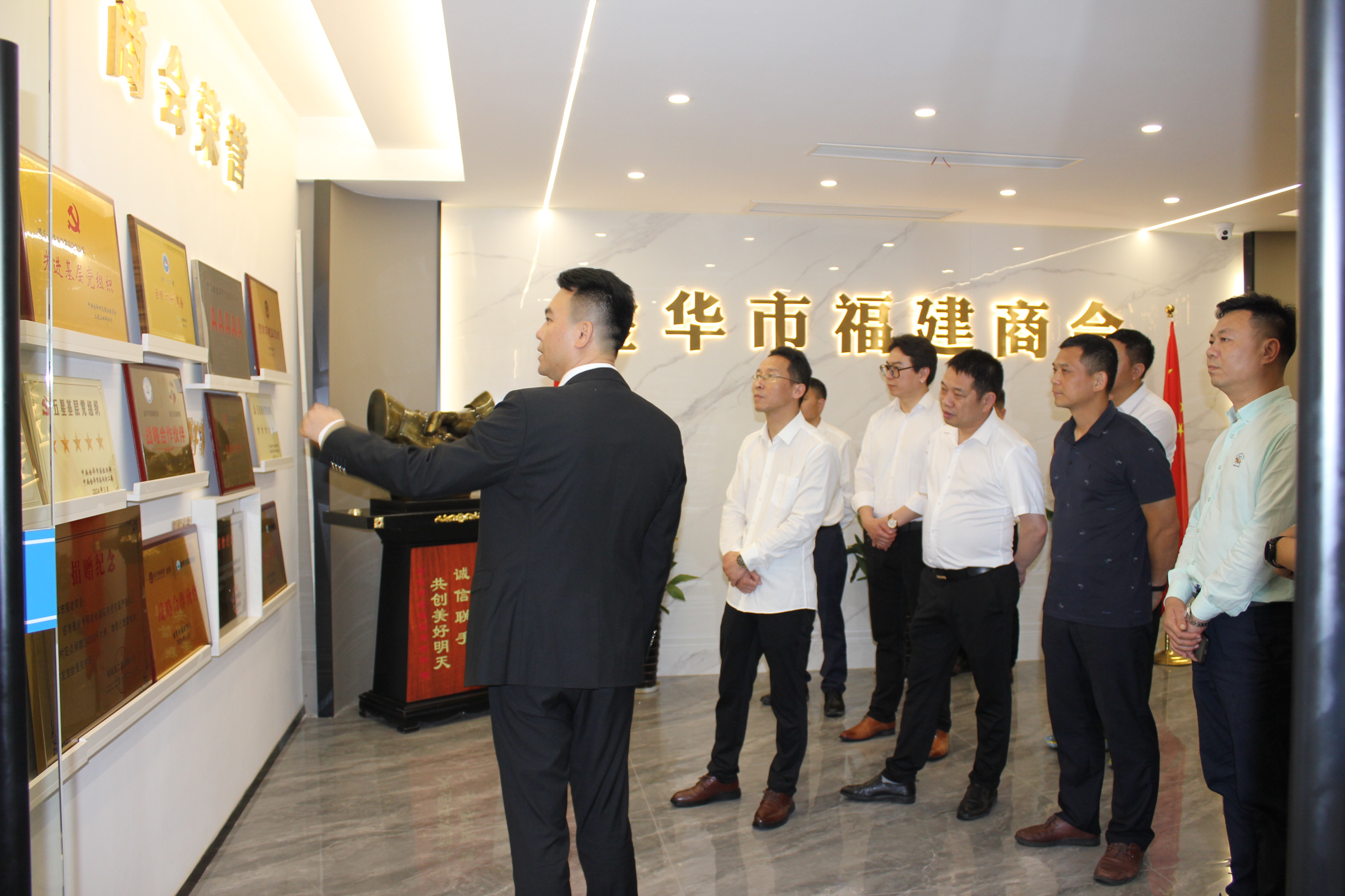 林建阳会长向考察团一行介绍了商会的办公场所、发展历程、所获荣誉、党建工作、清廉商会建设、商会组织架构以及理事会成员风采等等。