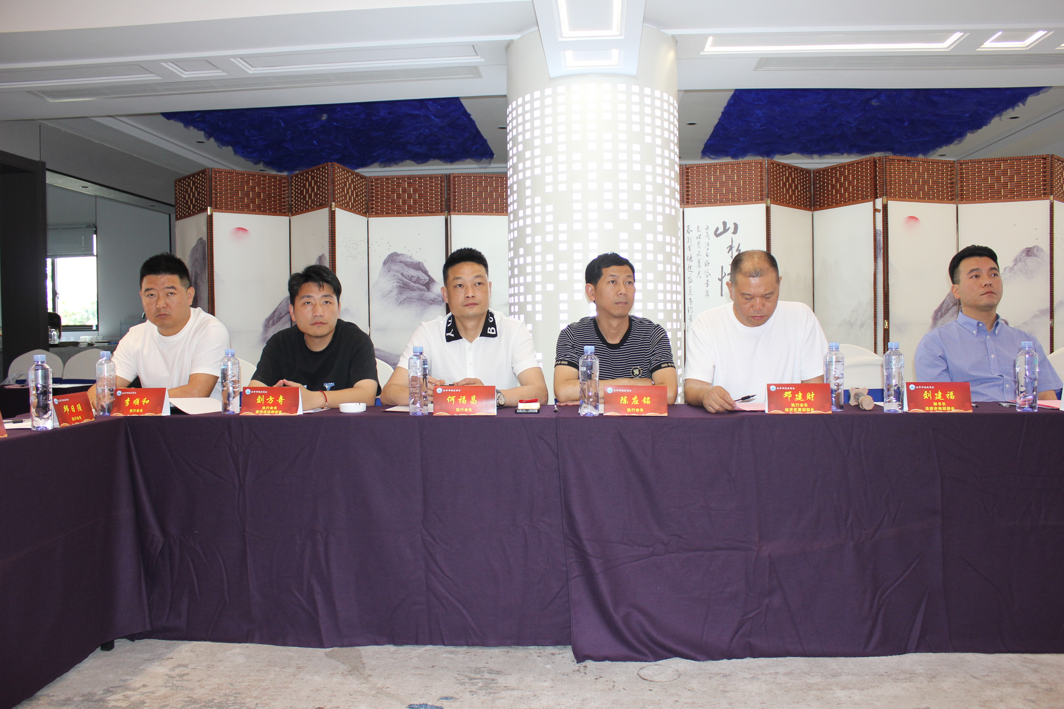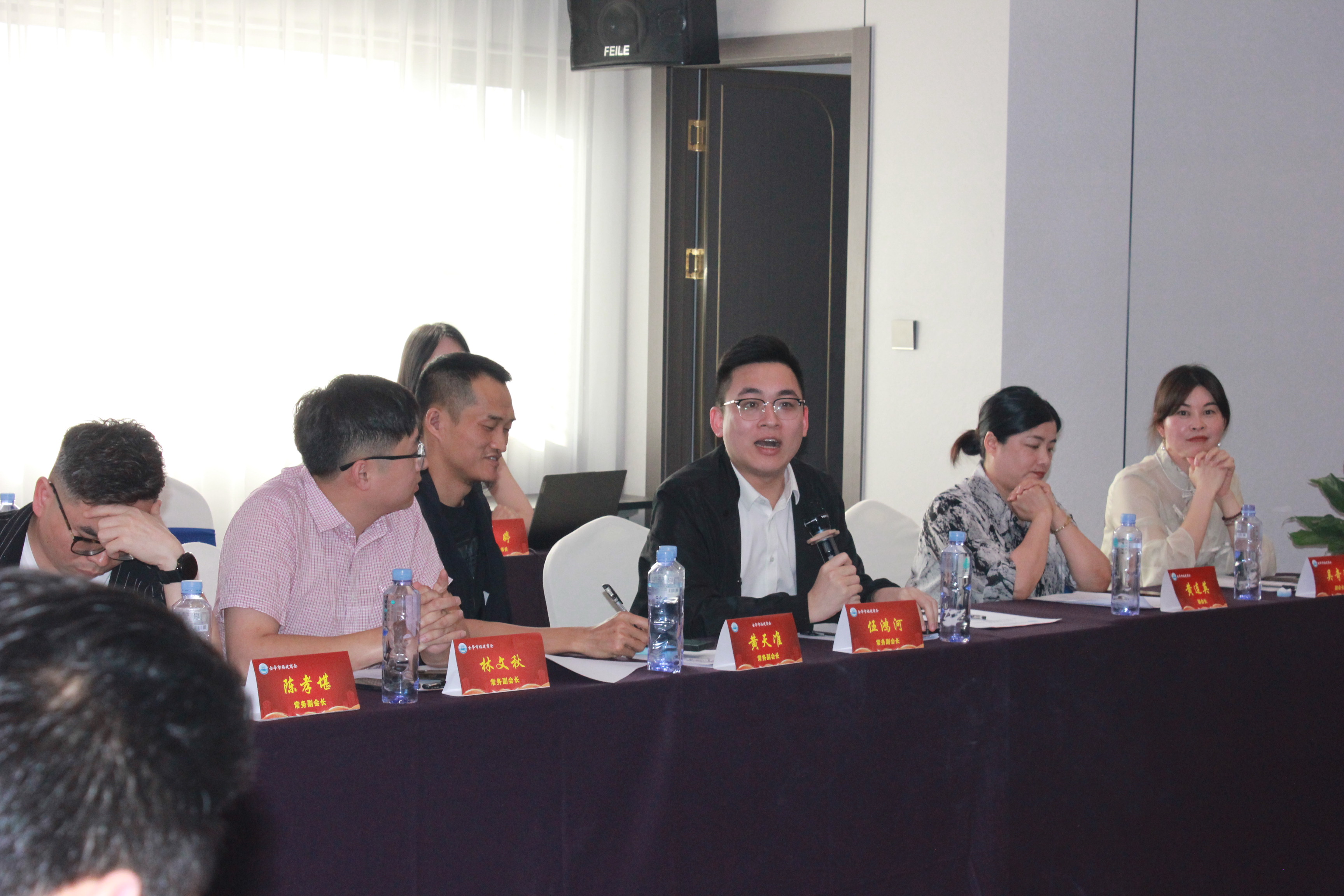 秘书长刘建福首先隆重向全体参会成员介绍了近期新加入商会的理事会成员:常务副会长伍鸿河、原理事单位吴奇殊荣升为副会长,并邀请二位发言自我介绍。全体参会成员对新加入的成员表示热烈欢迎。