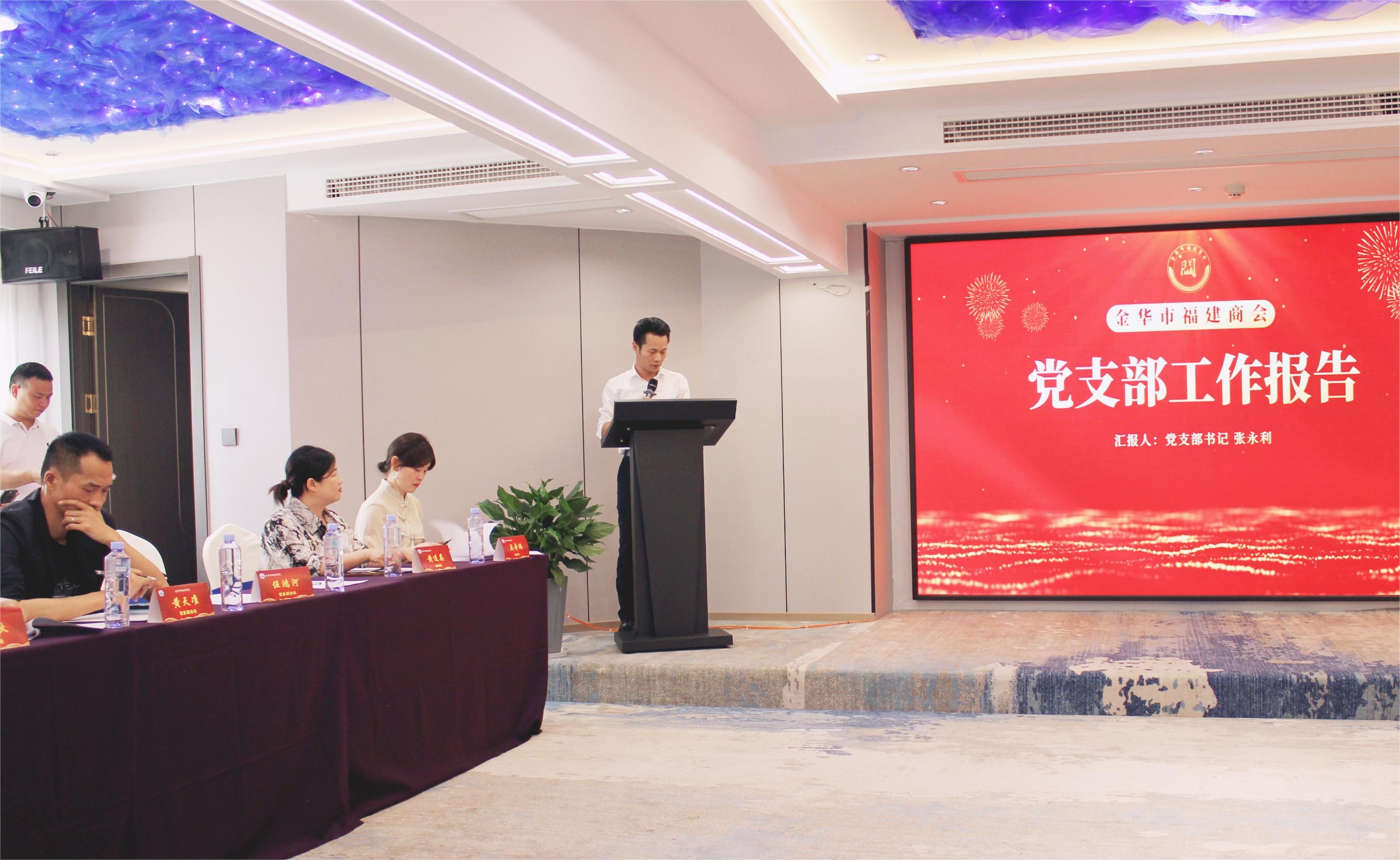 张书记发言中提到,金华市福建商会党支部积极配合商会开展活动,切实有效召开党支部各项会议,在商会领导班子和全体成员共同努力下,支部取得了诸多荣誉。与此同时,也存在一些需要改进的问题,在今后的工作中,以开展党纪学习教育作为重要政治任务,精心组织实施,加强督促落实,并积极开展“红色领航,闽心向党”党建品牌活动,挖掘支部成员们的特长,提升支部活动深度,总结好的做法和经验,大力推进党建工作走深走实,以优异成绩迎接中国共产党成立103周年!
