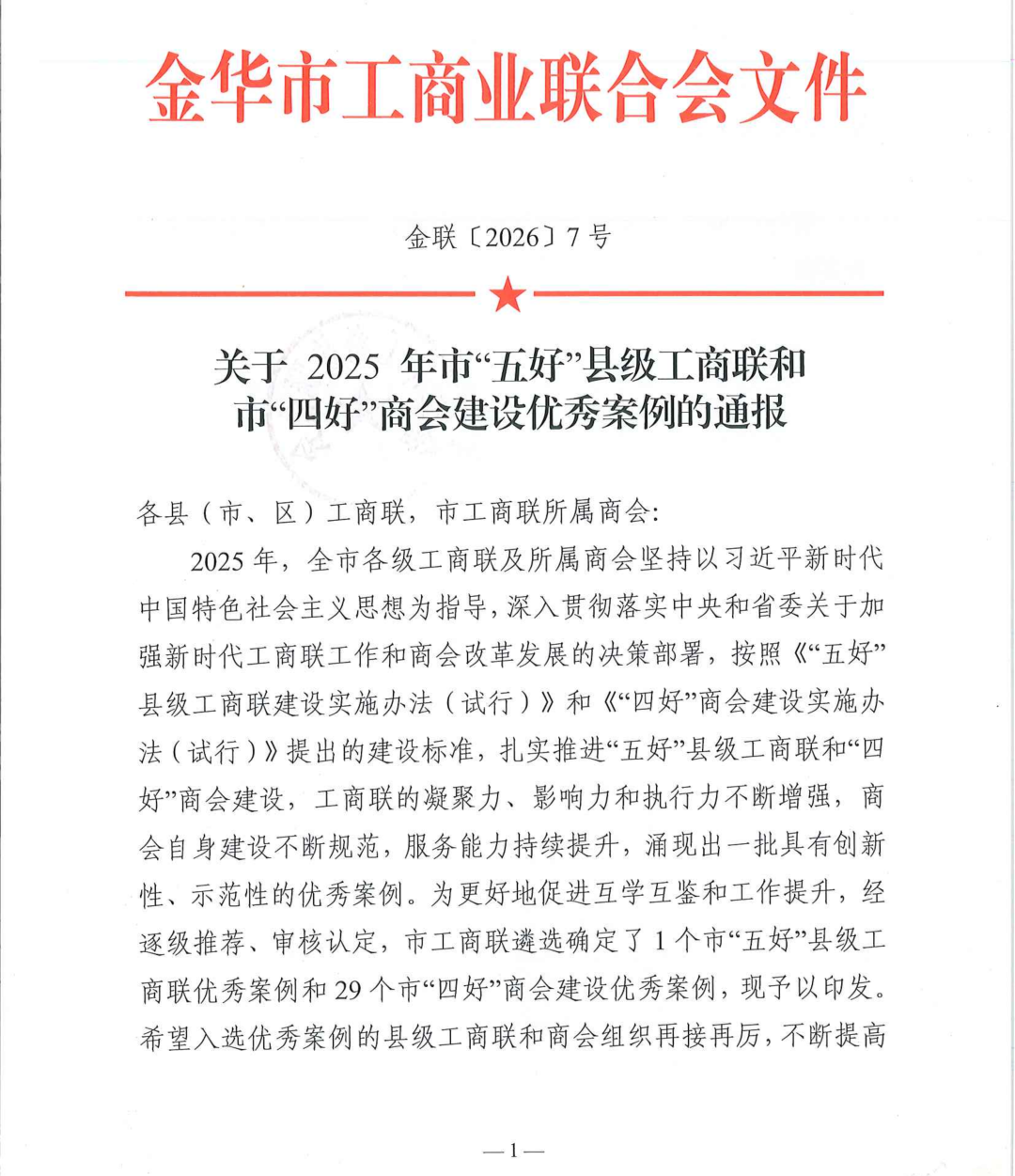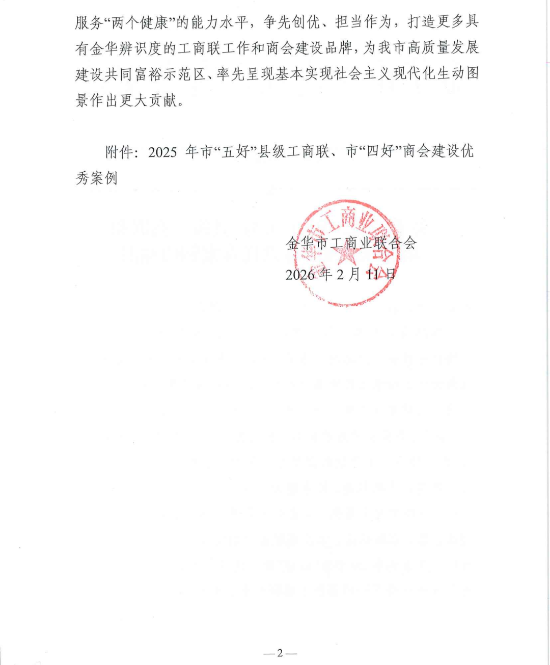 2月11日,金华市工商业联合会发布通知,金华市福建商会成功获评2025年金华市“四好”商会建设优秀案例,这份荣誉是对商会党建引领、规范建设、服务发展工作的充分肯定与高度认可。