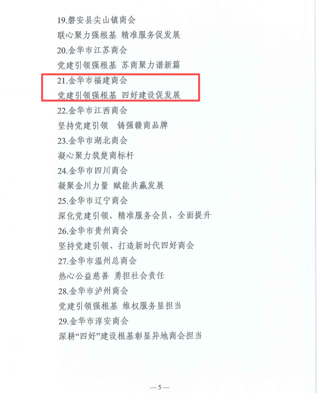 此次获评优秀案例,既是鼓励,更是鞭策。金华市福建商会将以此为新起点,再接再厉、砥砺前行,持续规范自身建设,不断提升服务质效,切实提高服务“两个健康”的能力水平,充分发挥桥梁纽带与平台作用,为金华市高质量发展建设共同富裕示范区、率先呈现基本实现社会主义现代化生动图景作出新的更大贡献!